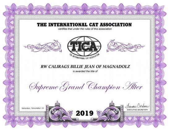 - Ms. Billie Jean is now a SGCA (Supreme Grand Champion Alter)!!